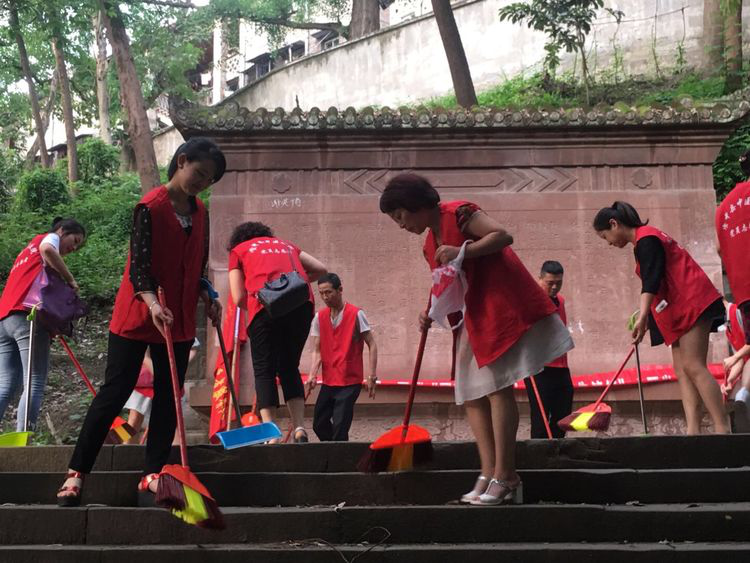 2018年5月18日,资中县中医医院组织开展"守护绿水青山·党员先锋行"主题党日活动,60余名党员不惧天气炎热,不畏蚊虫叮咬,不怕脏不怕累,清扫500余米长的步道,捡拾密林杂草中的垃圾,他们用辛勤和汗水为秀丽的重龙山"妆点美容"。