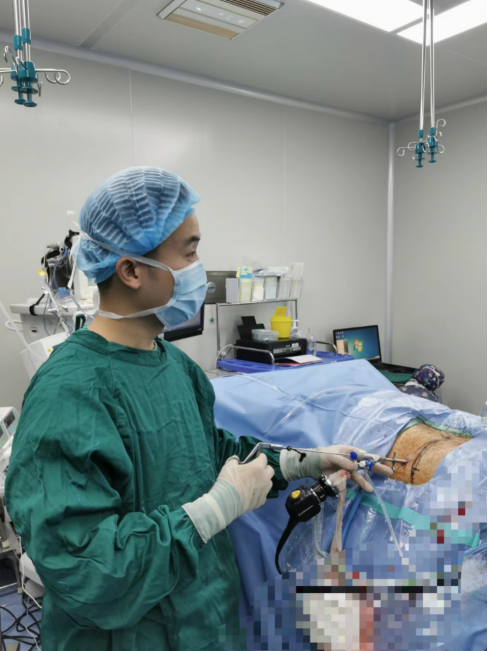 鉴于患者高龄,无法承受传统开放手术打击,微创椎间孔镜手术是该病的最佳治疗手段,骨科经过术前评估和准备,于2022年04月20日在麻醉下晓婆婆实施了椎间孔镜微创手术,手术持续约1个小时,手术切口仅7mm,术中出血约5ml,皮内美容缝合一针,无需拆线。术后患者腰痛及左下肢疼痛麻木消失;术后第二天即可下地行走。