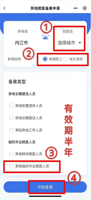 临时异地就医人员可在工作时间致电资中县医保局0832-5610387/5610136进行备案。