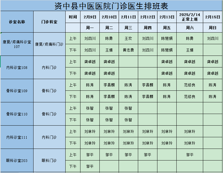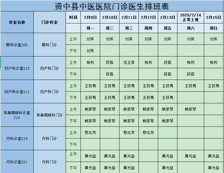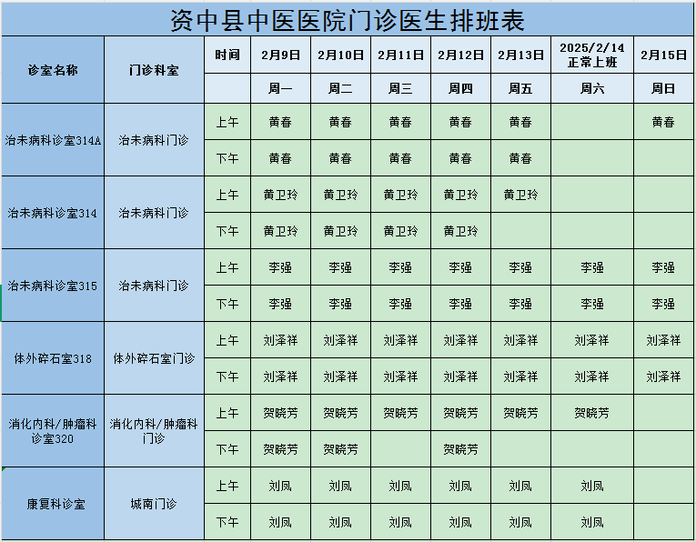 医生坐诊表