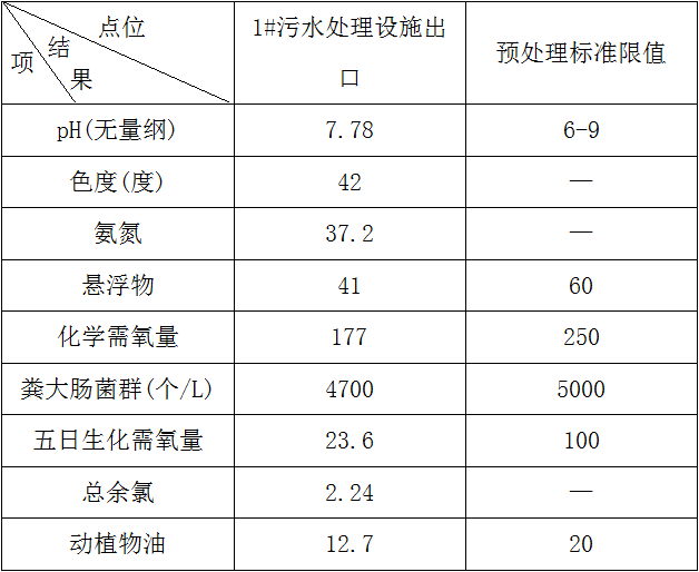 检测结果符合《医疗机构水污染物排放标准》(GB18466-2005)的预处理标准限值。