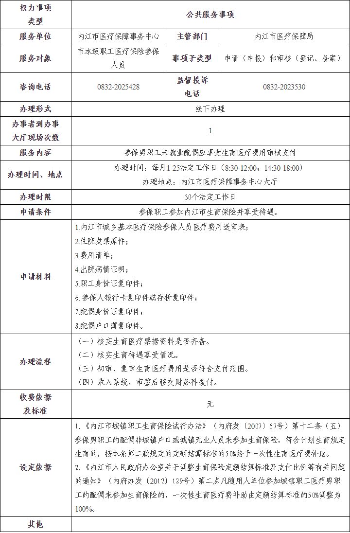 参保职工未就业配偶应享受生育医疗费用审核支付办事指南