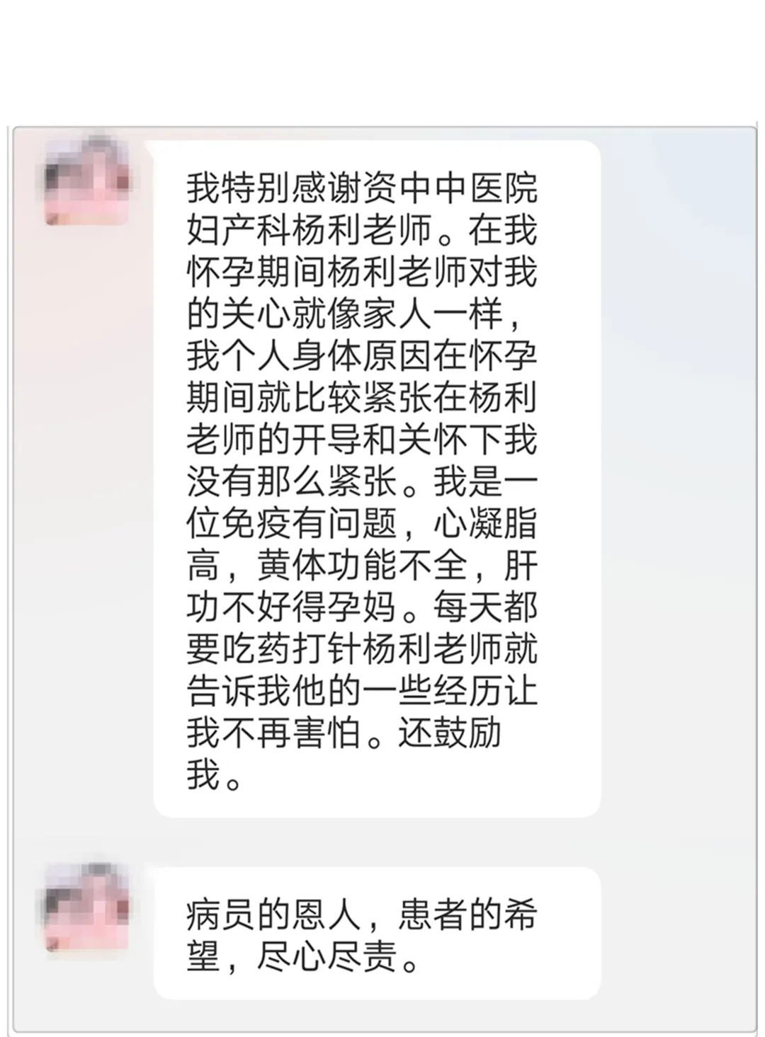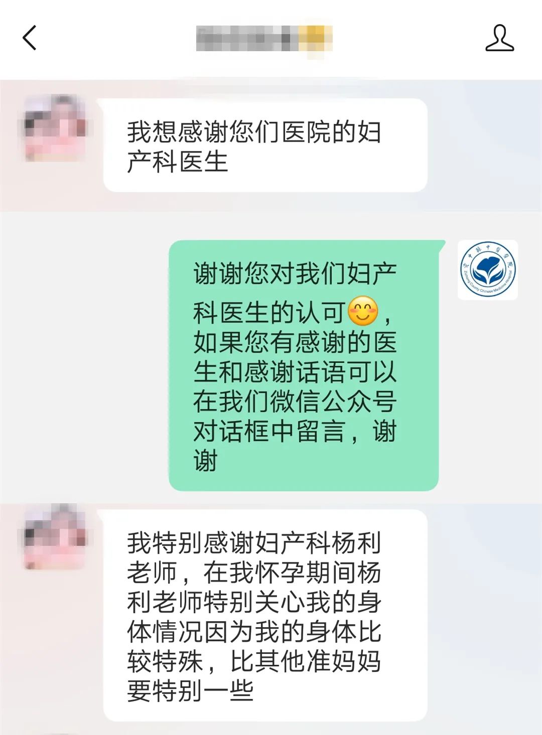 资中县中医医院微信公众号收到感谢留言