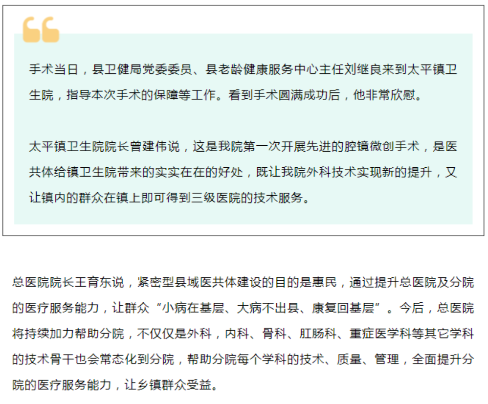 总医院技术团队助太平分院首次开展腹腔镜微创外科手术