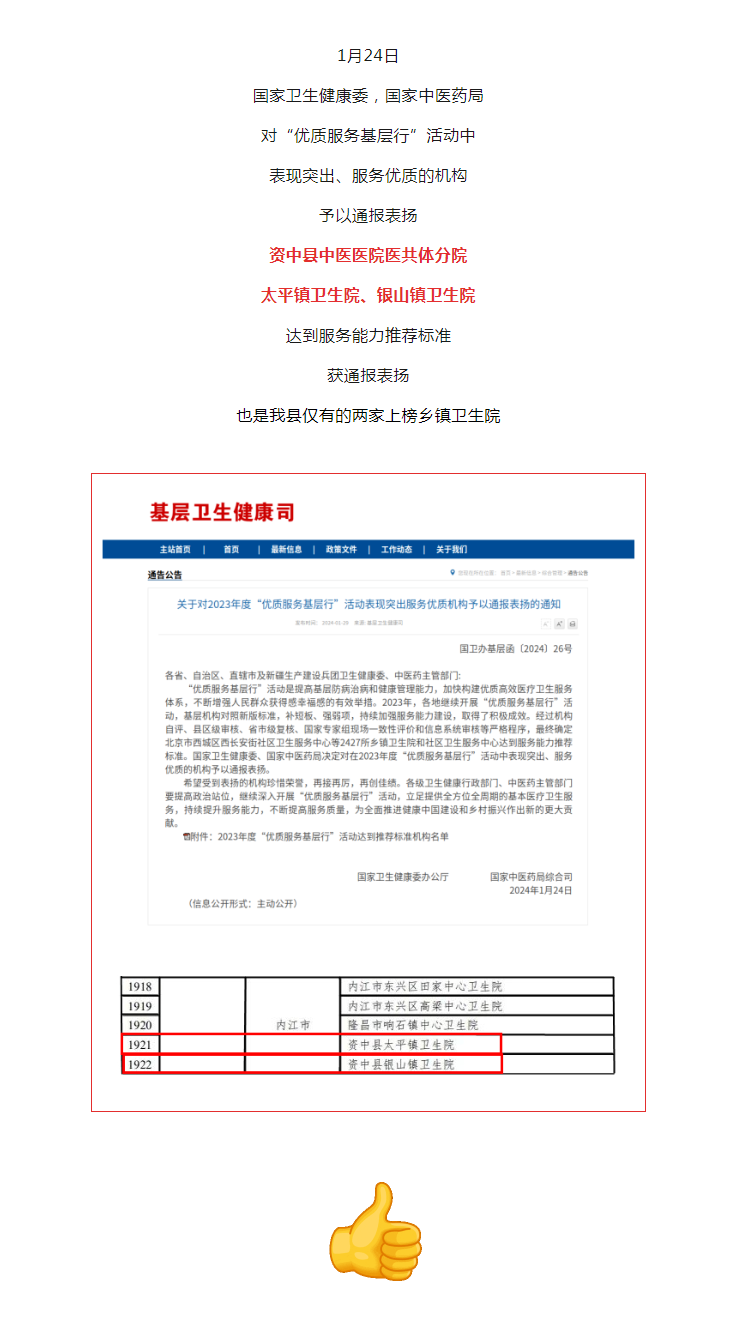 国家卫生健康委通报表扬医共体太平分院、银山分院