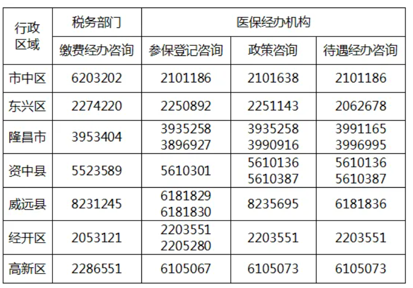 缴费人在费款缴纳方面的问题请咨询当地税务部门,在参保登记、变更、终止以及待遇享受方面的问题请咨询当地医保部门。