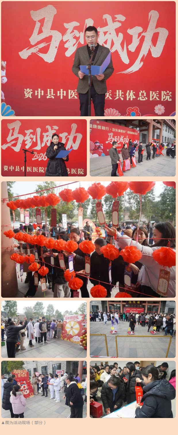 春启新程,岁迎祥马!当马年新春将至,县中医医院医共体总医院为致谢医共体全体职工一年来的辛劳付出,拉紧各成员单位的协作纽带,于2026年1月28日,在总医院住院部广场举办 “健康医路行,欢乐满医心” 迎春趣味活动。医共体400余名职工代表暂卸忙碌,在欢声笑语中释放活力,定格别样的“医者风采”。