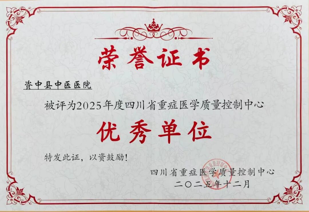 近日,四川省重症医学质量控制中心发布了关于2025年度四川省重症医学质量控制中心考核评价结果的通知,其中资中县中医医院获评优秀单位。这既是对我院重症医学科综合管理与服务能力的高度认可,也标志着我院重症医学质控水平跻身全省优秀行列。