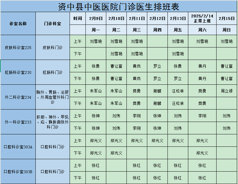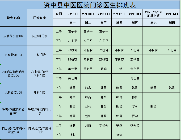 医生坐诊表